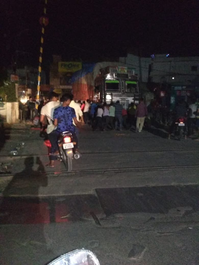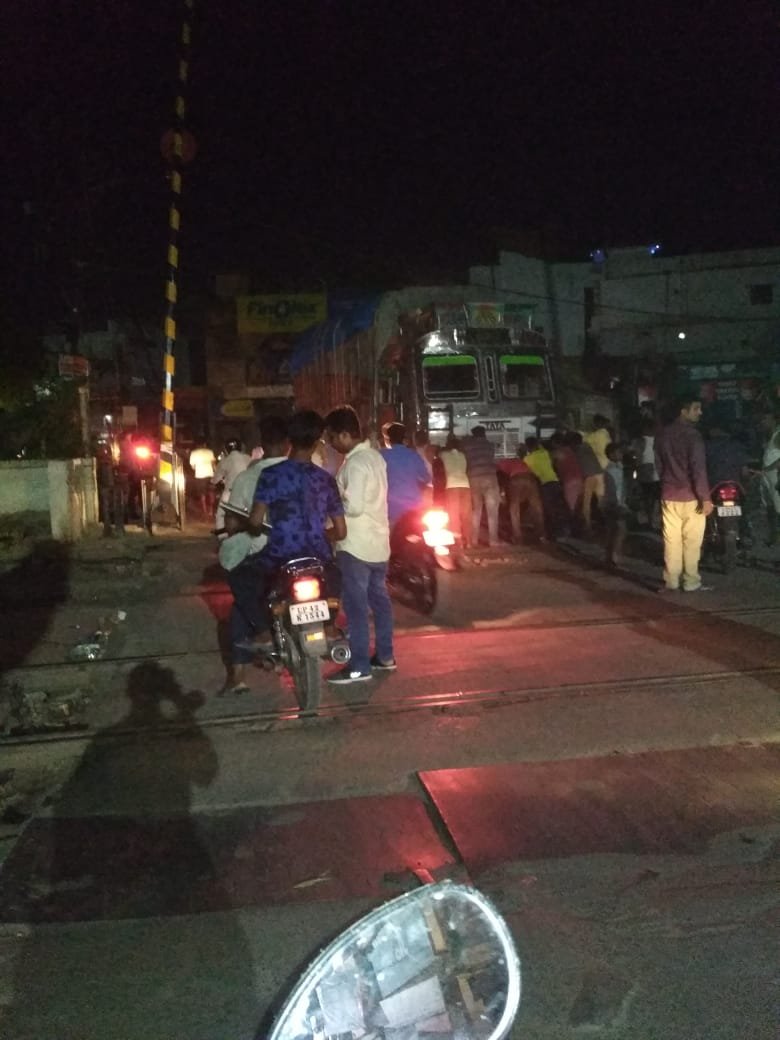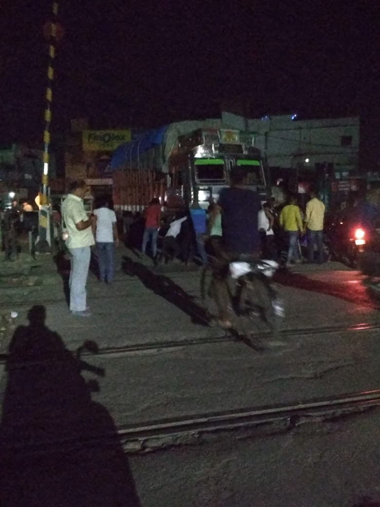 मोदहा रेलवे क्रासिंग पर एकाएक लोडेड ट्रक हुई बन्द।जेस्ट बैरियर के नीचे तकनीकी खराबी के चलते हुई बन्द,नहीं हो रही स्टार्ट,उत्सर्ग एक्सप्रेस फैज़ाबाद रेलवे स्टेशन पर खड़ी,करीब 1 घण्टे से ज्यादा हुई लेट,फरुक्खाबाद से छपरा जाने वाली ट्रेन संख्या 18192 उत्सर्ग के साथ साथ अन्य ट्रेनों का आवागमन हुआ बन्द,करीब 50 की संख्या में लोग ट्रक को दे रहे धक्का,ट्रक नहीं हो रही टस से मस,पूरा रेल प्रबंधन मौके पर।
