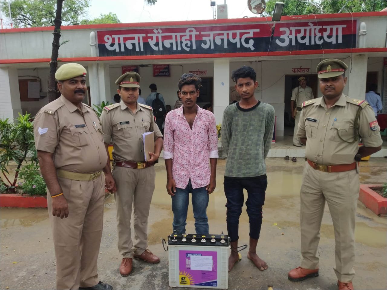 बैट्री की दुकान में चोरी का मामला।सोहावल चौराहा स्थित बैट्री दुकान से बैट्री व् जगदी रु चोरी का खुलासा,रौनाही पुलिस टीम ने मैं बैट्री व् दो चोरों को लिया ही हिरासत में,चोरों को भेजा जेल।बैट्री दुकान संचालक सुरेश कुमार भारती थाना क्षेत्र के बड़ी गालिबपुर का है निवासी,सीओ सदर वीरेंद्र विक्रम सिंह ने किया चोरी का खुलासा