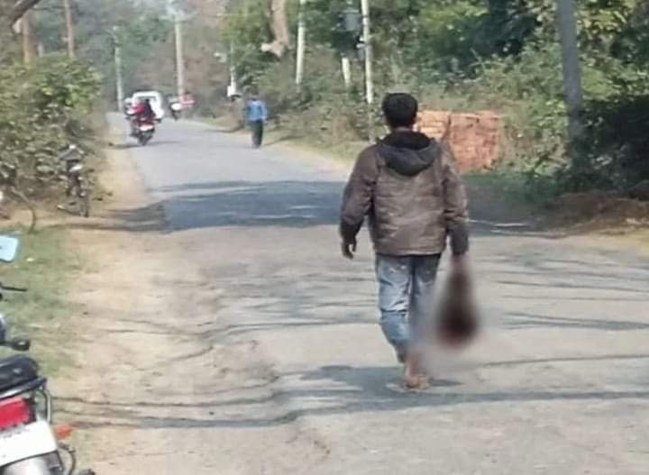 दिन दहाड़े सरेआम पति ने काट दिया पत्नी का सिर।कटा सिर लेकर निकल पड़ा सड़क पर,पुलिस ने किया गिरफ्तार,पति अखिलेश रावत की दो वर्ष पहले रंजनी (25) से शादी हुई थी।पारिवारिक विवाद में आक्रोशित पति ने सरेआम हसिया से पत्नी की गर्दन काट दी,हाथ में कटा सिर लेकर पति थाने जाने के लिए सड़क पर निकल पड़ा,रास्ते में पुलिस ने किया गिरफ्तार,जहांगीराबाद थाना क्षेत्र के ग्राम बहादुरपुर गांव का मामला।