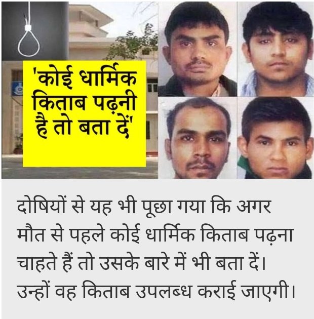 मौत से पहले किसी धर्मगुरु से मिलना है, कोई किता पढ़नी है..निर्भया के दोषियों से पूछी गई आखिरी इच्छा…