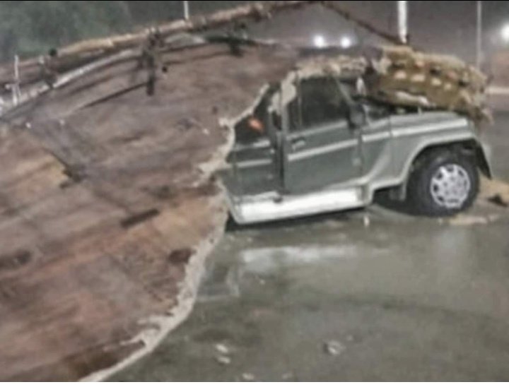 अयोध्या : बीते 24 घंटे से हो रही लगातार मूसलाधार बारिश के चलते पूरे शहर भर में जहां जलभराव हो गया है और कॉलोनी और गलियां तालाब में तब्दील हो गई हैं | वहीं दूसरी तरफ जिले में कई स्थानों पर पेड़ और कच्चे मकान भी गिर गए हैं | धार्मिक नगरी Ayodhya अयोध्या के सरयू तट के किनारे लगी विशालकाय भगवान हनुमान Hanuman की प्रतिमा तेज बारिश के बीच अचानक एक बोलेरो Bollero वाहन पर गिर गई | इस घटना में बोलेरो में मौजूद ड्राइवर जख्मी हो गया है जिसे इलाज के लिए अस्पताल ले जाया गया है |